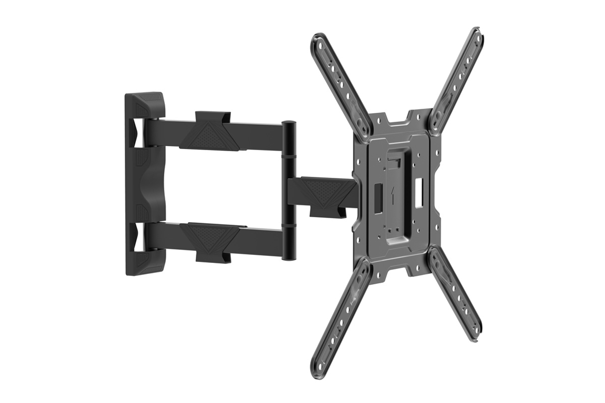 Наклонно-поворотный ТВ кронштейн с увеличенным выносом Harper TVFW-65 поддерживает стандарты VESA: 75x75, 100x100, 200x100, 200x200, 300x300, 400x400 мм, совместим с диагоналями телевизоров от 17 до 65 дюймов и выдерживает весовую нагрузку до 35 кг. Настенный телевизионный кронштейн Harper TVF-65 позволяет изменять угол наклона ТВ от –15° до +5°, угол наклона в горизонтальной плоскости ± 4°, поворачивать панель влево/вправо на 180° и отодвигать телевизор от стены на расстояние до 423 мм (в сложенном состоянии минимальное расстояние до стены 62 мм), а раздельная конструкция, состоящая из настенной пластины и передней панели с крепёжными направляющими, обеспечивает простую сборку кронштейна вместе с установленным на неё телевизором. В комплект поставки Harper TVFW-65 входят крепежные принадлежности: анкеры и дюбели, подходящие для монтажа ТВ кронштейна на разные поверхности: бетонные и кирпичные стены, деревянные плиты и доски (для других типов оснований необходимо приобрести специализированный крепёж). Для удобства использования кронштейн Harper TVFW-65 оборудован держателями кабелей.